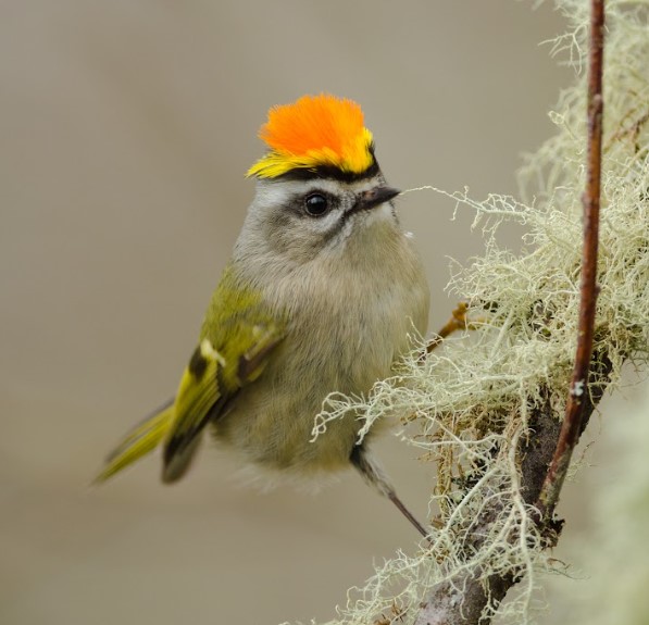 Photo: A Golden-crowned Kinglet displays its brilliant crest. Credit: Jacob McGinnis