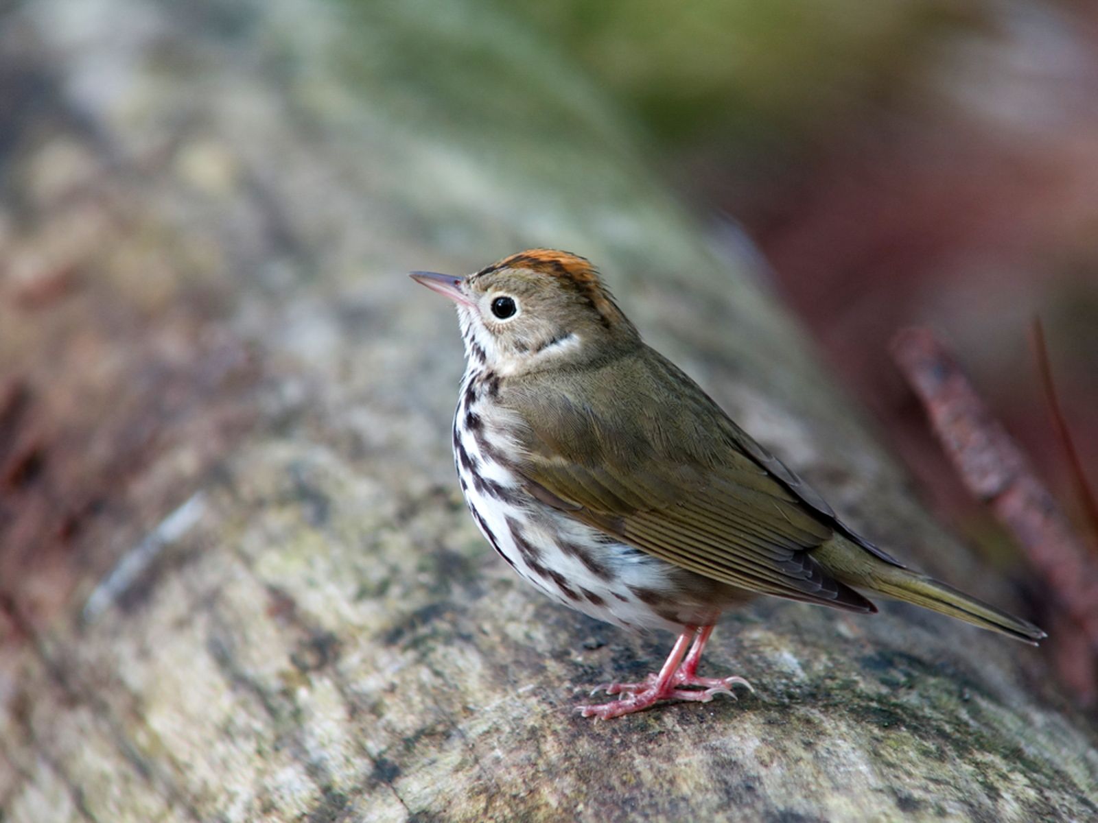 Photo: An ovenbird sits on a tree bark. Credit: Megumi Williamson