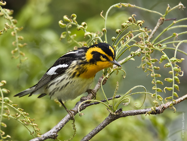 Photo: A Blackburnian Warbler perches on a small branch. Credit: David Speiser