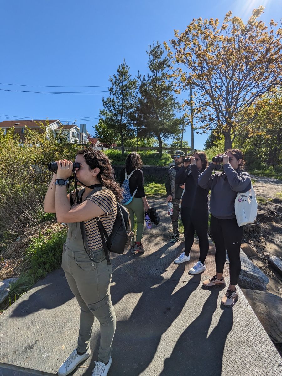 Photo: Outing participants spotting birds during a bilingual outing in Pugsley Creek Park Credit: NYC Bird Alliance