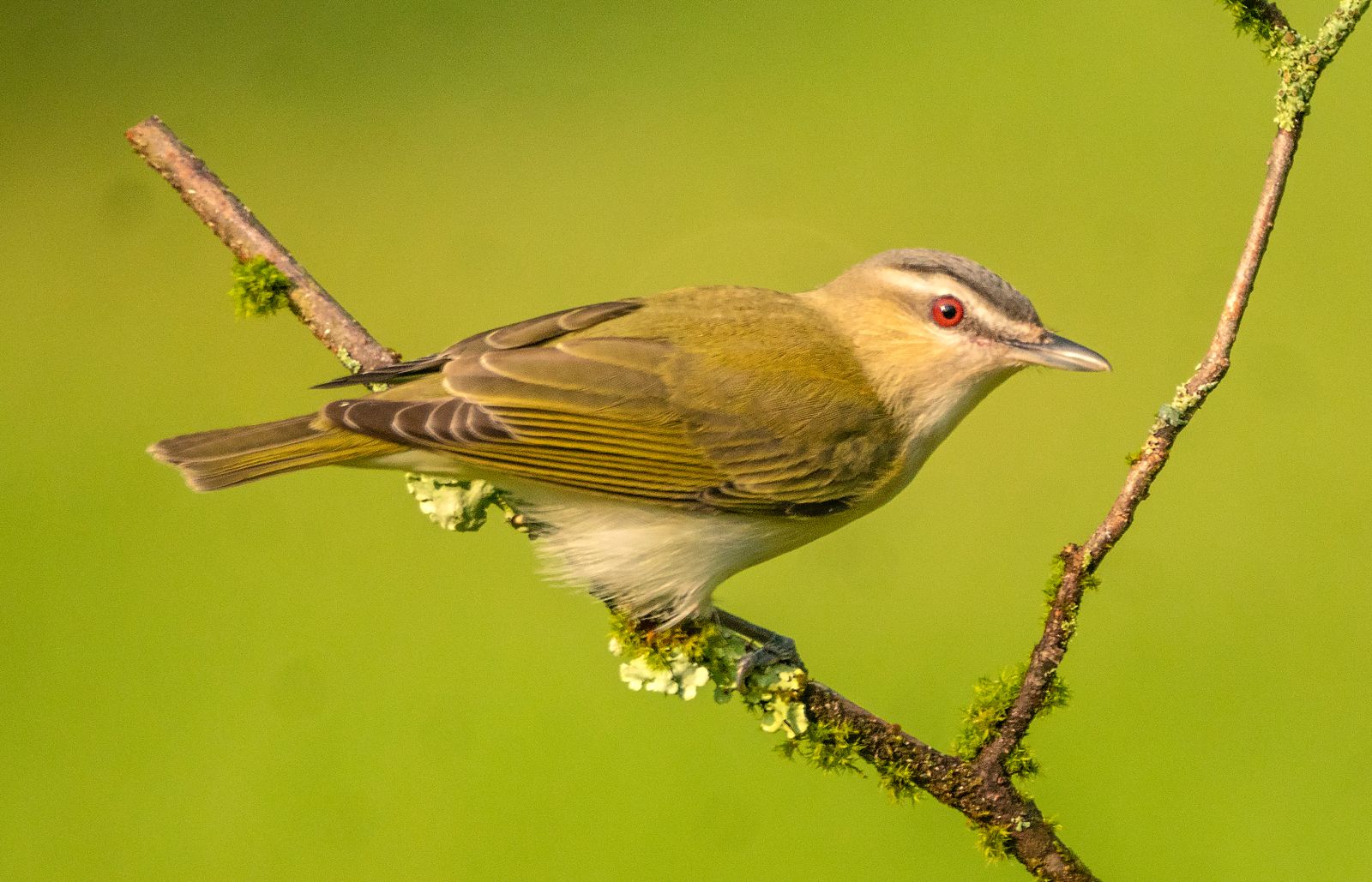 Photo: A perched Red-eyed Vireo provides an unusually good view of its red eye. Credit: Steve Guttman/CC BY-NC-ND 2.0